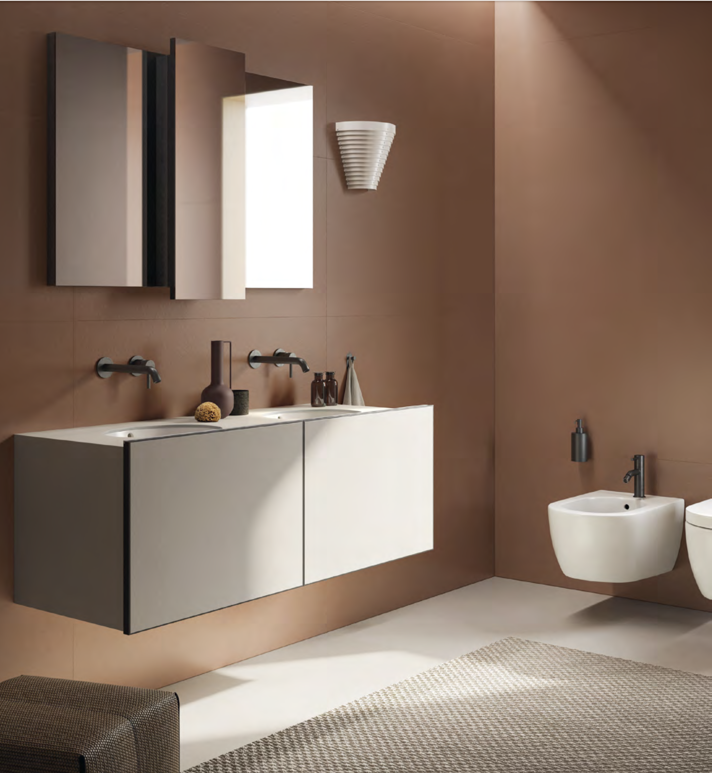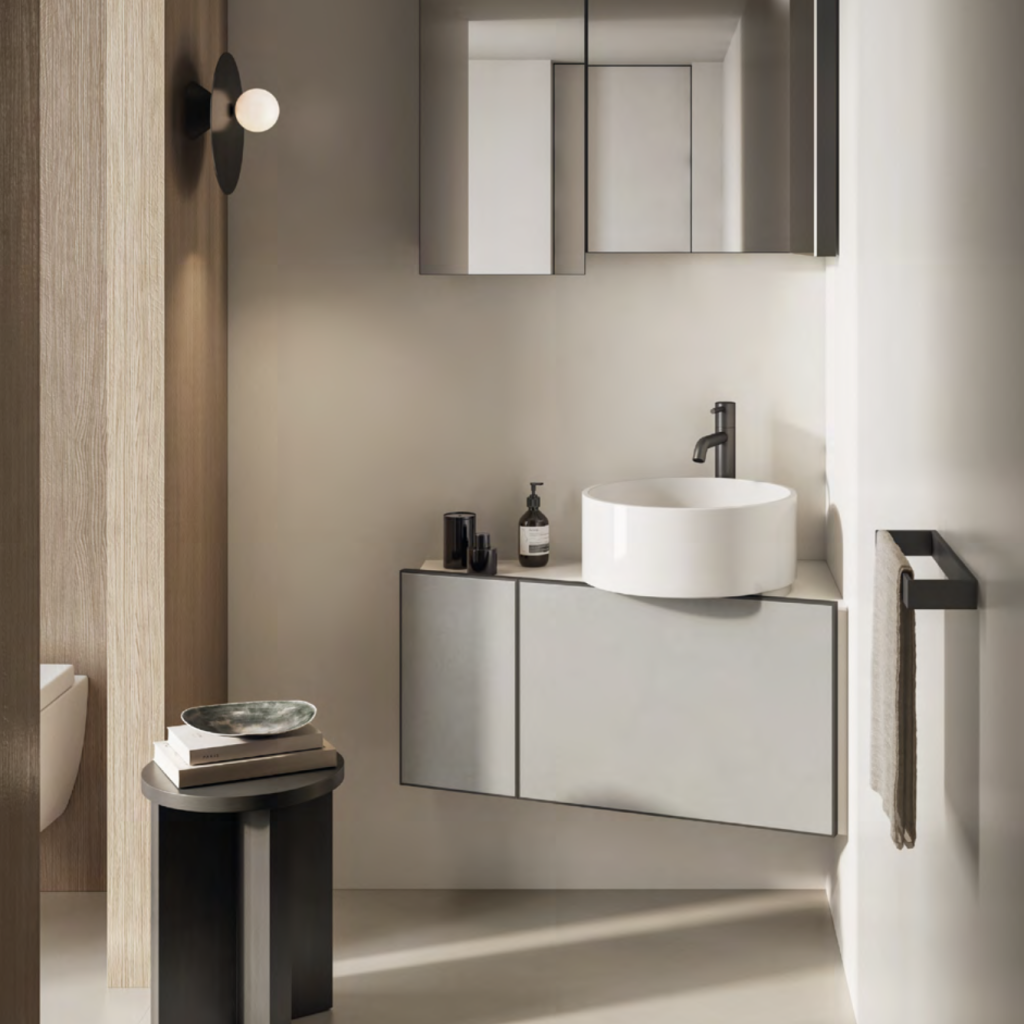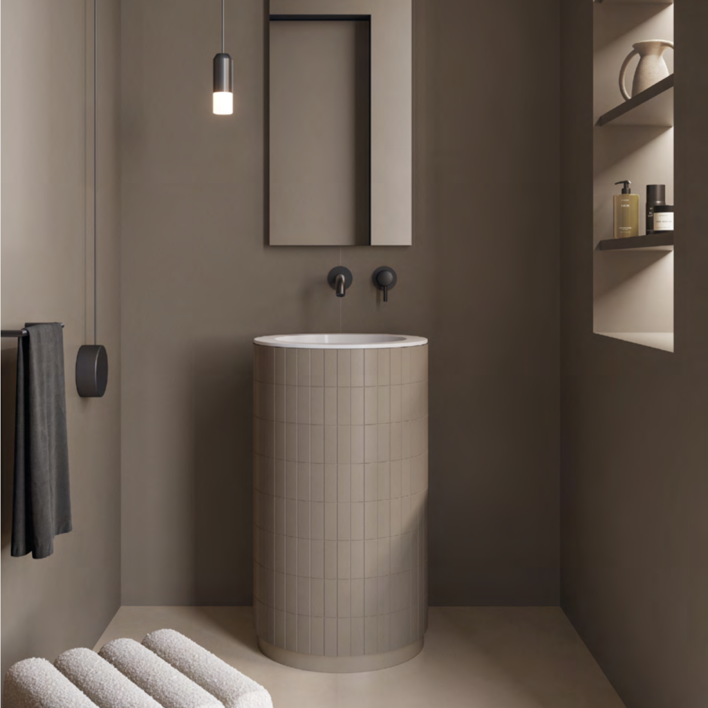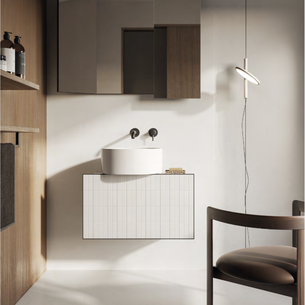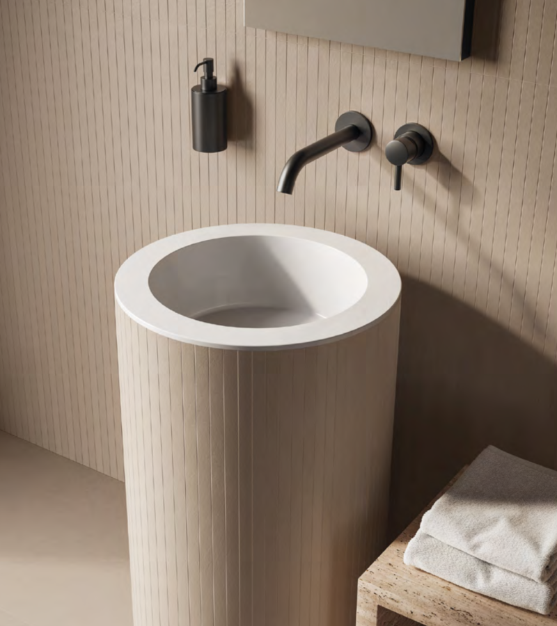 Die perfekte Synergie zwischen Feinsteinzeug und Keramik, die technische und funktionelle Leistungen miteinander verbindet, und kommt in den für das Bad entworfenen LOOM-Komponenten durch ihre essentiellen Formen bestens zum Ausdruck, die sich elegant mit Böden und Wänden kombinieren lassen.