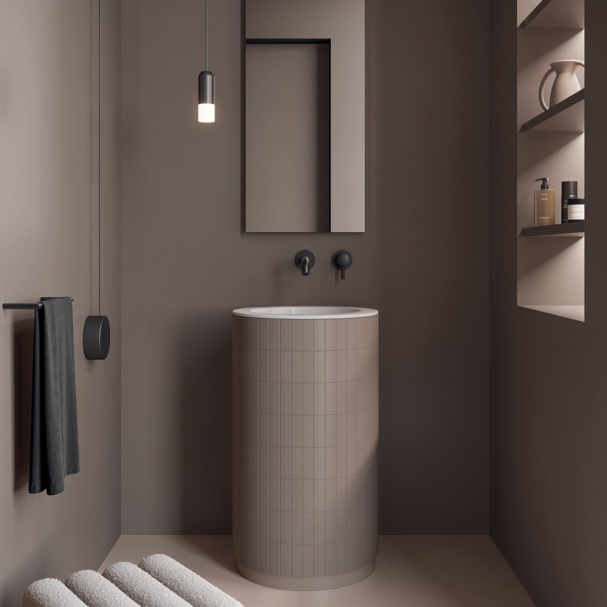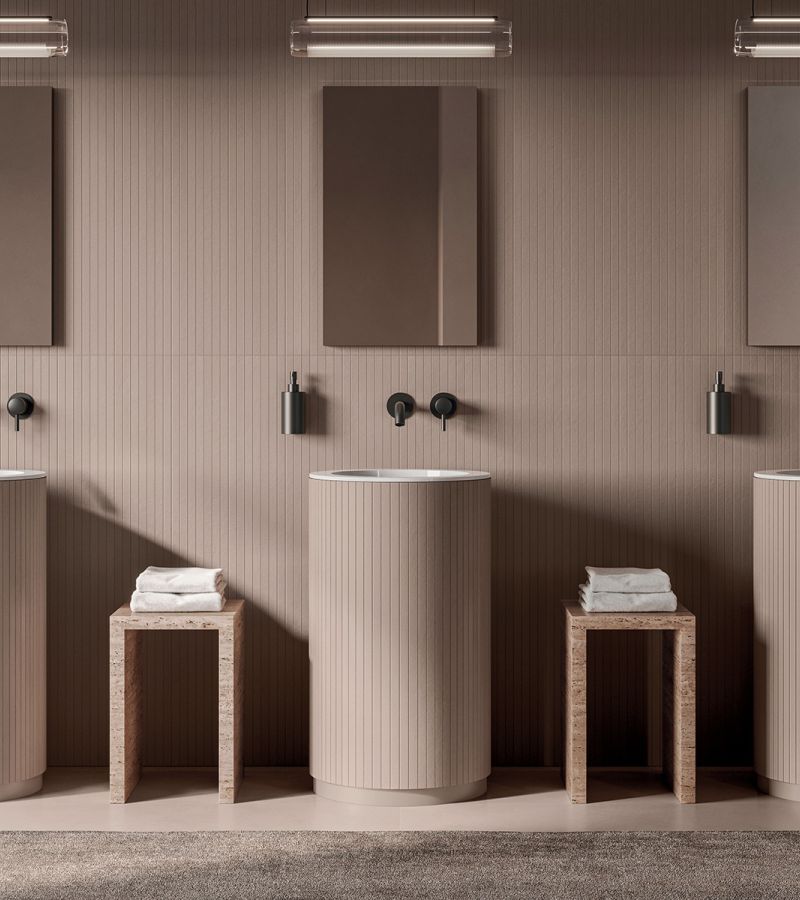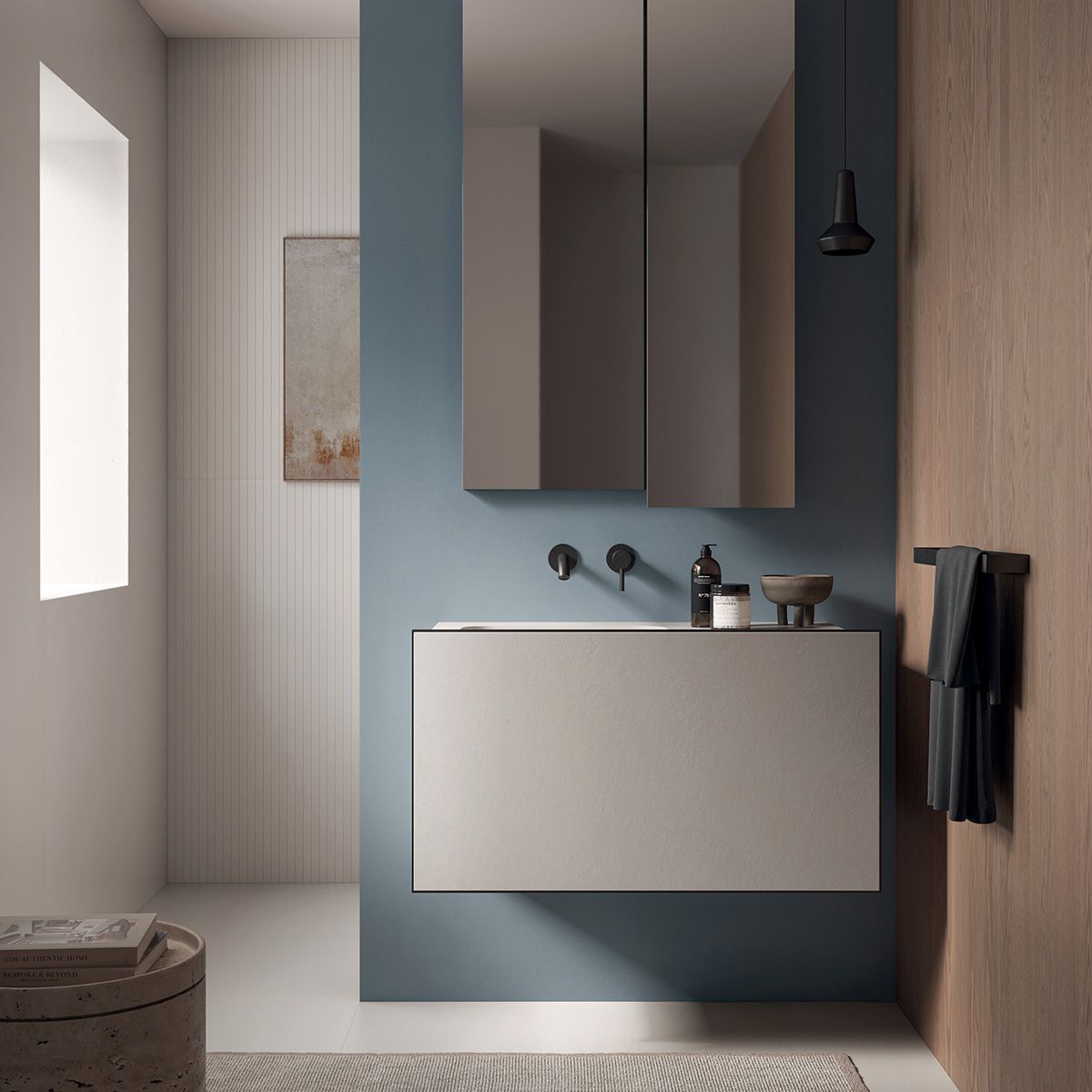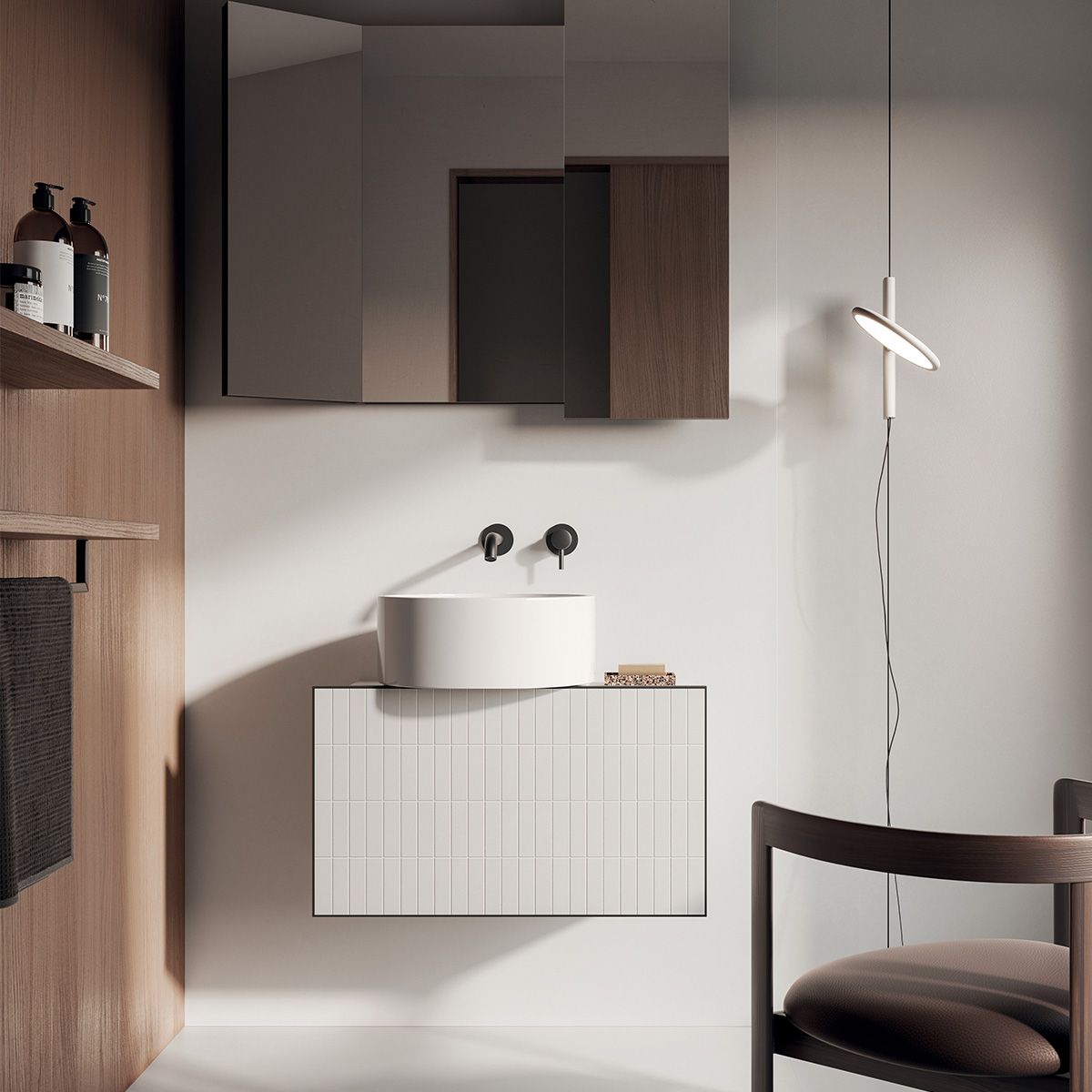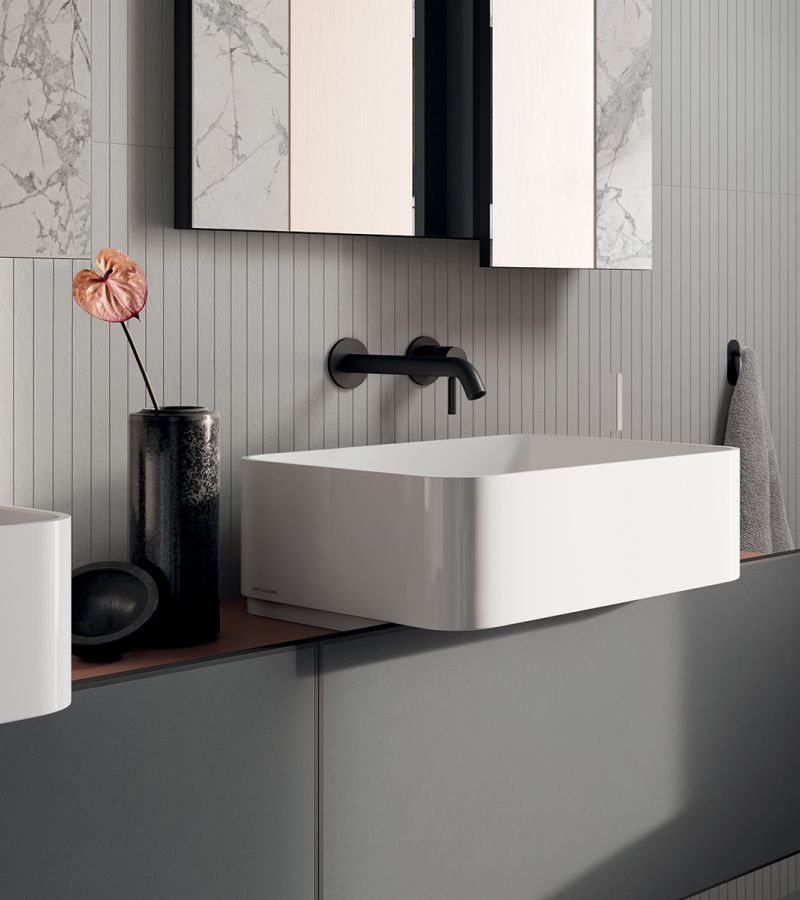 Die perfekte Synergie zwischen Feinsteinzeug und Keramik, die technische und funktionelle Leistungen miteinander verbindet, und kommt in den für das Bad entworfenen LOOM-Komponenten durch ihre essentiellen Formen bestens zum Ausdruck, die sich elegant mit Böden und Wänden kombinieren lassen.