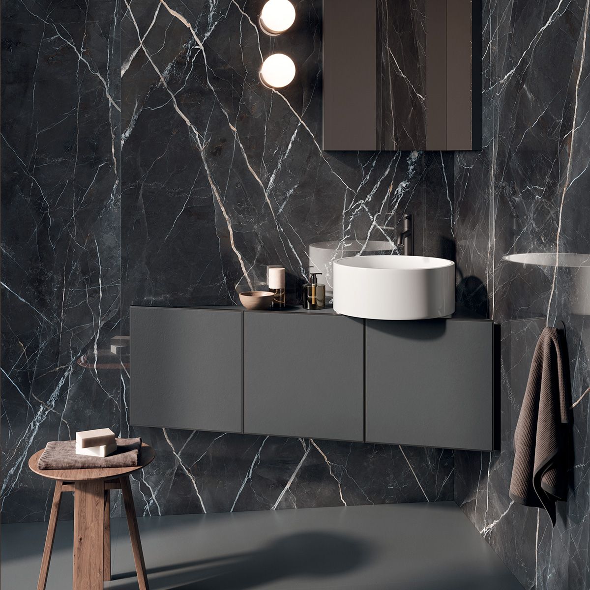 Il gres porcellanato Italgraniti è la superficie dall’elevato valore tecnico ed estetico, che corre senza interruzioni da terra a parete. Una materia d’arredo ideale per la stanza da bagno, perché fonde versatilità e funzionalità.