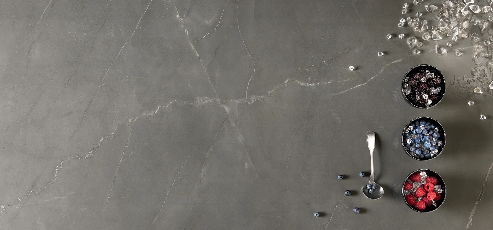 Entdecken Sie die Vielseitigkeit des Feinsteinzeugs von Italstone: eine große Auswahl an aufeinander abgestimmten Platten in 1,2 und 0,6 cm Dicke, um alle Oberflächen in der Küche einzurichten, von Arbeitsplatten über Wohnzimmermöbel bis hin zu Einrichtungsaccessoires.